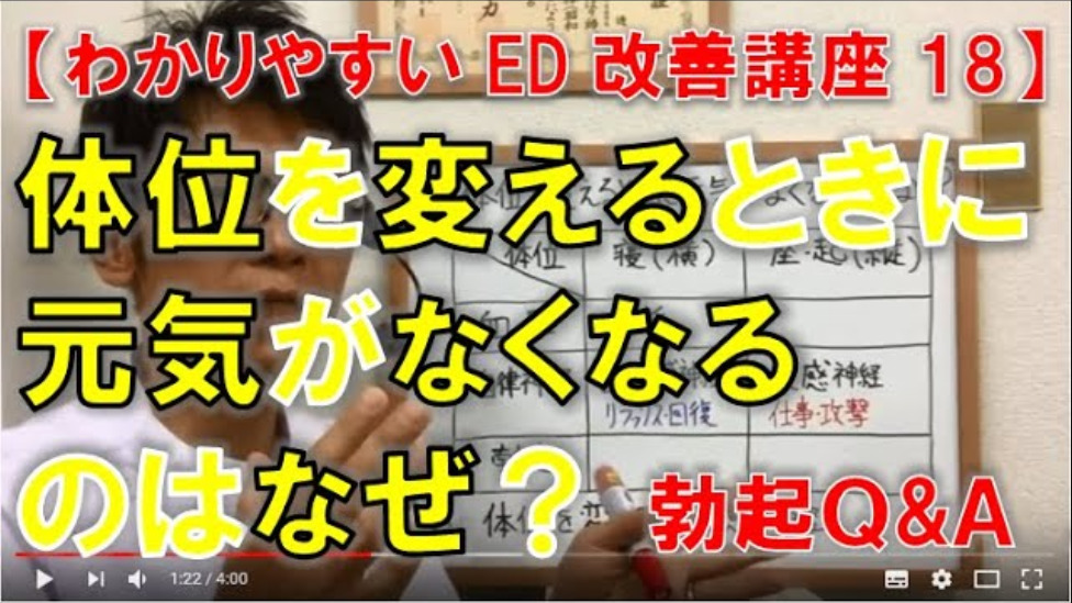 【わかりやすいED改善講座18】勃起Q&A「体位を変えるときに元気がなくなるのはなんでですか?」
