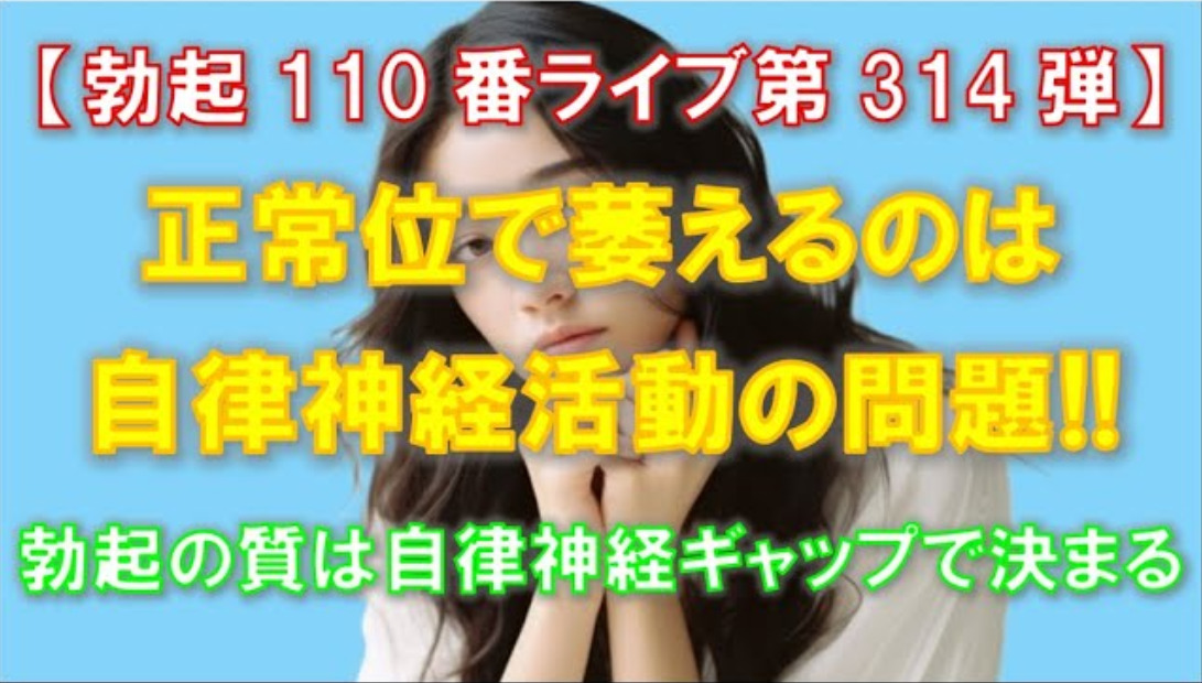 【勃起110番ライブ no.314】正常位で萎えるのは自律神経活動の問題!! ~ 勃起の質は自律神経ギャップで決まる ~